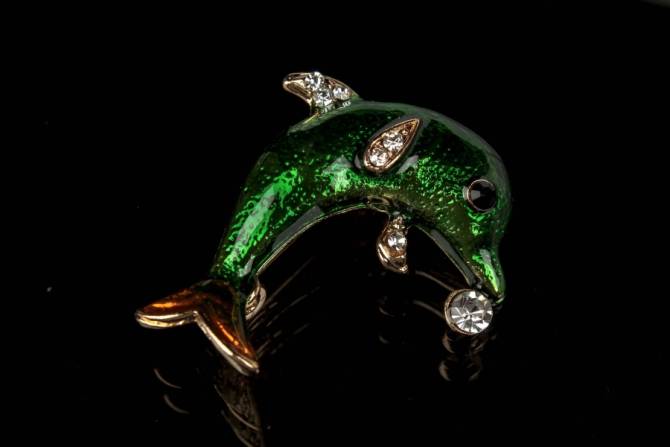 Брошь в виде дельфина декорированная стразами