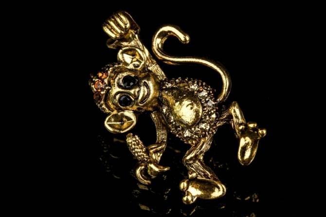 Брошь в виде обезьянки с глазами-стразами