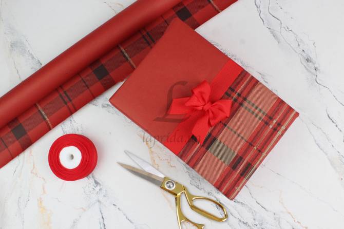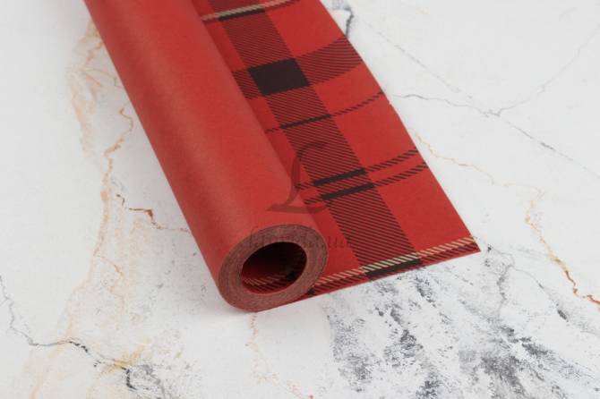 Бумага упаковочная крафт двусторонняя "Тон черным+клетка красным" в рулоне (8м*0,7м) 255-4617