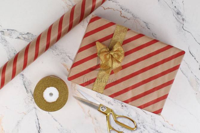 Бумага упаковочная крафт "Диагональ красная" в рулонах (8м*0,7м) 255-4211