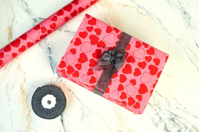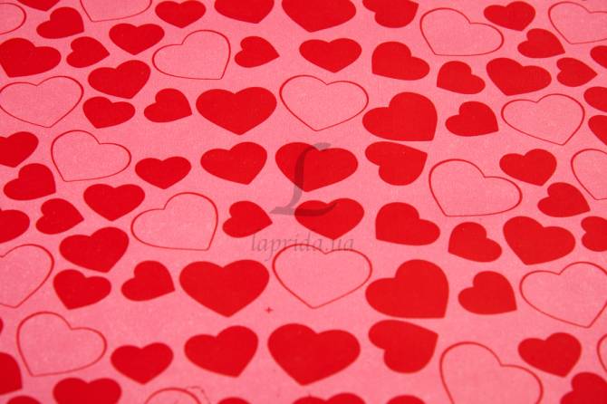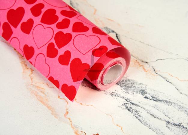 Бумага упаковочная "Красные сердца на розовом" в рулоне (0,7м х8м) 70г/м2 255-9117