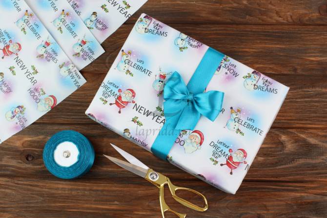 Бумага упаковочная новогодняя "Новогодние гномы" в рулоне (0,7м х8м) 70г/м2 255-2644