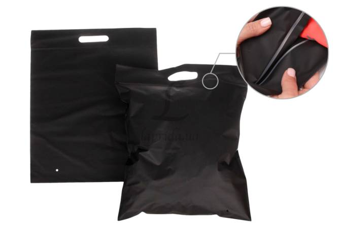 Пакет слайдер з чорним замком та прозорою стінкою 350х450 мм 60 мкм чорний матовий 31-196