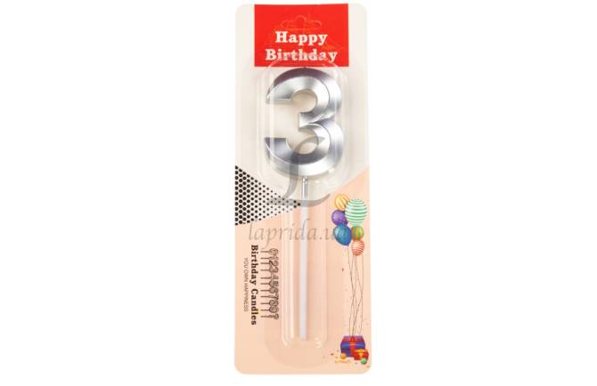 Свеча цифра "3" (золото) 5-84197