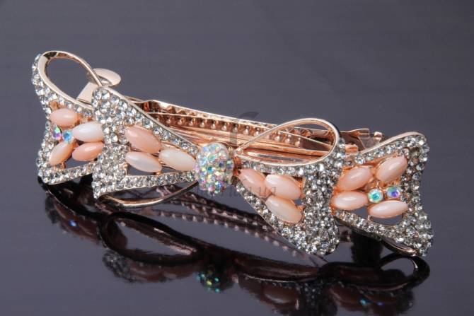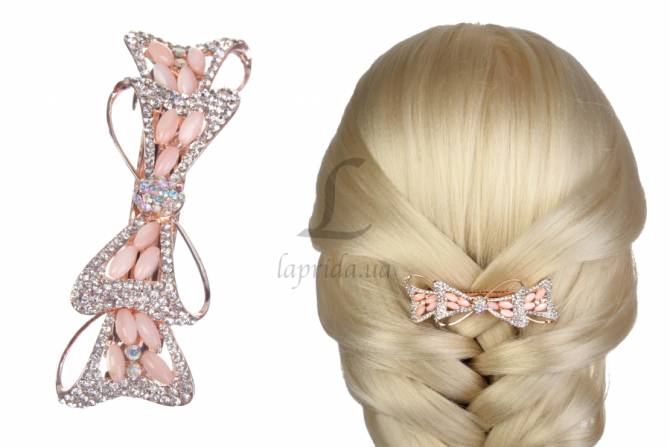 Заколка для волос оригинальной формы со стразами и бусинами 11-19084