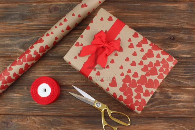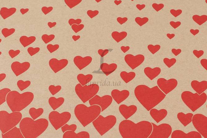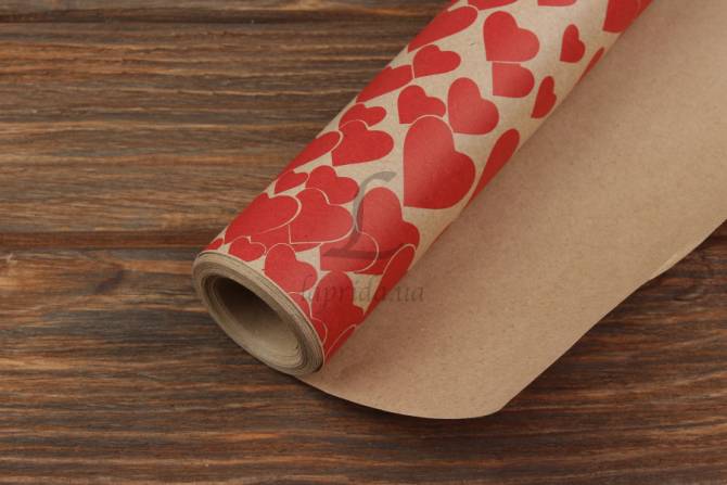Папір пакувальний крафт бурий "Серця червоні" в рулоне (8м*0,7м) 80 г/м² 255-4440