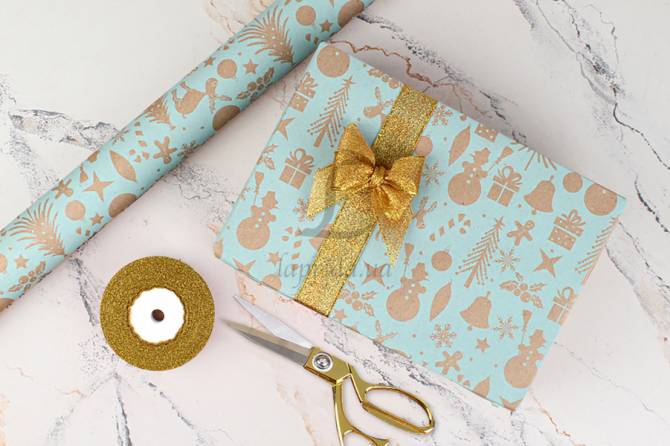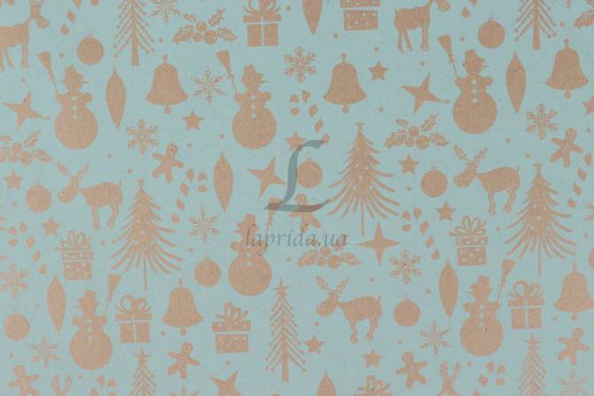 Папір пакувальний новорічний "Гном бірюзовий" в рулоні (0,7м х8м) 70г/м2 255-4082