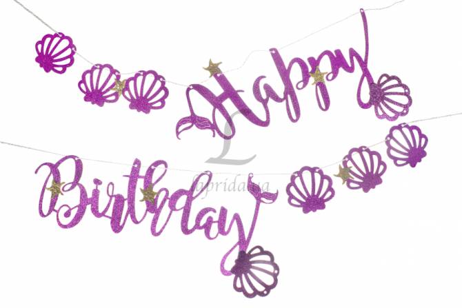 Святкова гірлянда "Happy birthday" із мушлями (фіолетова)