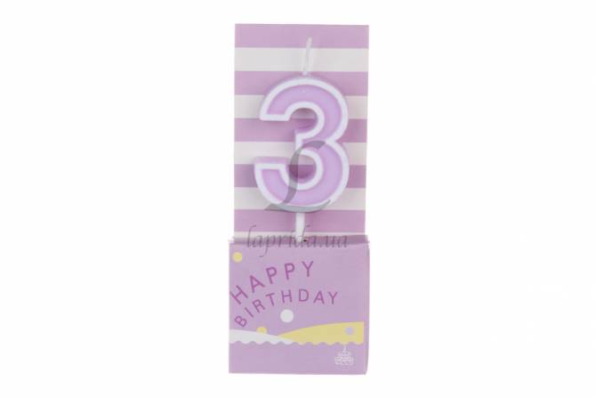 Свеча цифра "3" (сиреневая) 5-80779