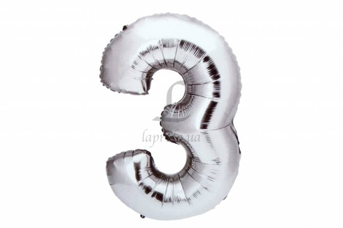 Воздушный шар в форме цифры серебро матовый "3" 1м 5-78257
