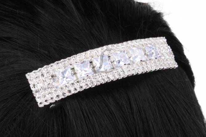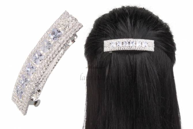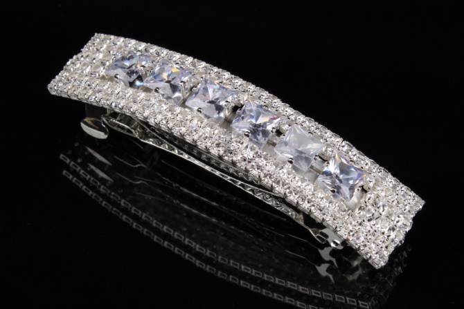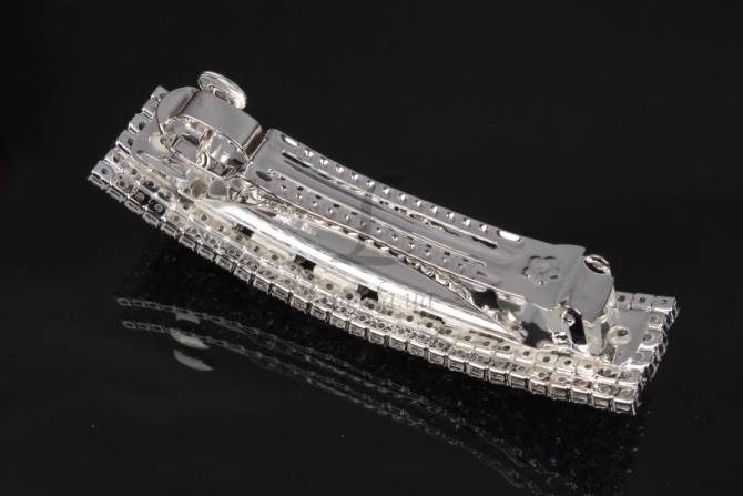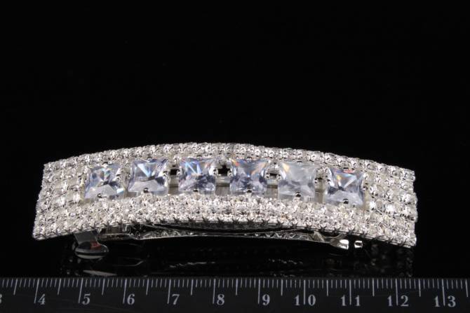 Шпилька автоматична ажурна у вигляді бантика зі стразами