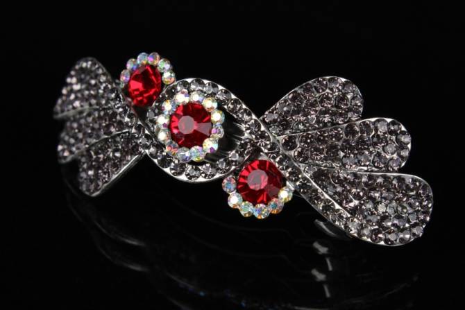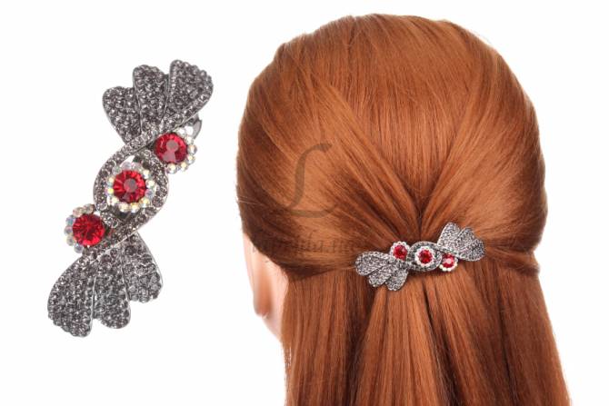 Шпилька для волосся оригінальної форми зі стразами і намистинами