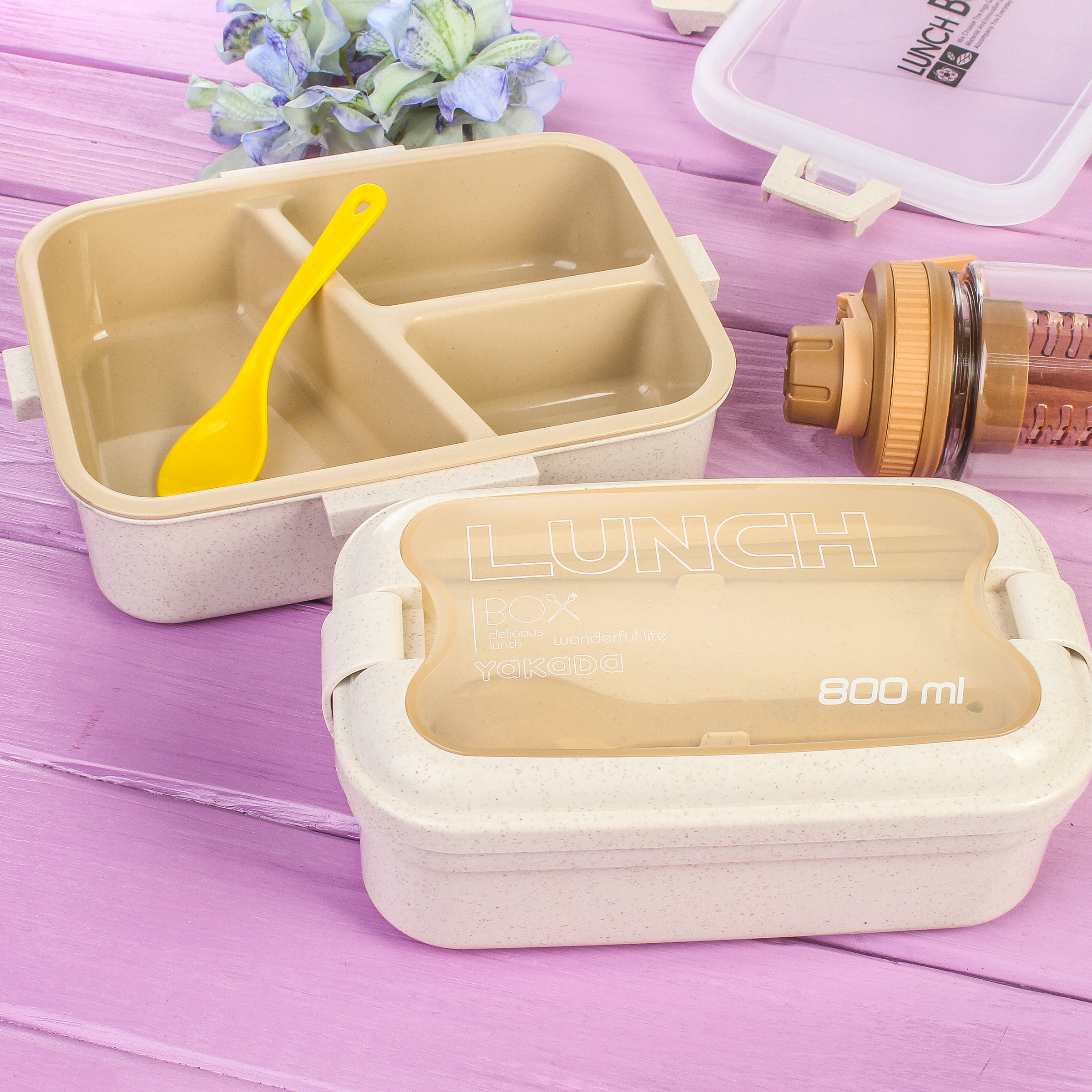 Ланч-бокс из биоразлагаемого пластика – это новый тренд для тех, кто заботится не только о своем здоровье, но и об окружающей среде. Такой материал экологически чист, выдерживает высокие температуры, а главное – абсолютно безопасен для человека и природы. Сырье для изготовления такого ланч-бокса состоит из переработанных волокон пшеницы, крахмала и пищевого полипропилена, то есть, по сути, это ланч-бокс из пшеничного волокна.