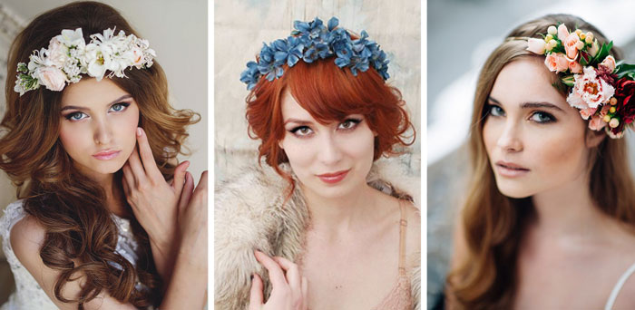 сочетаются с палитрой летнего гардероба. Широкий обруч для волос, украшенный орхидеями или маленькими розами, прекрасно